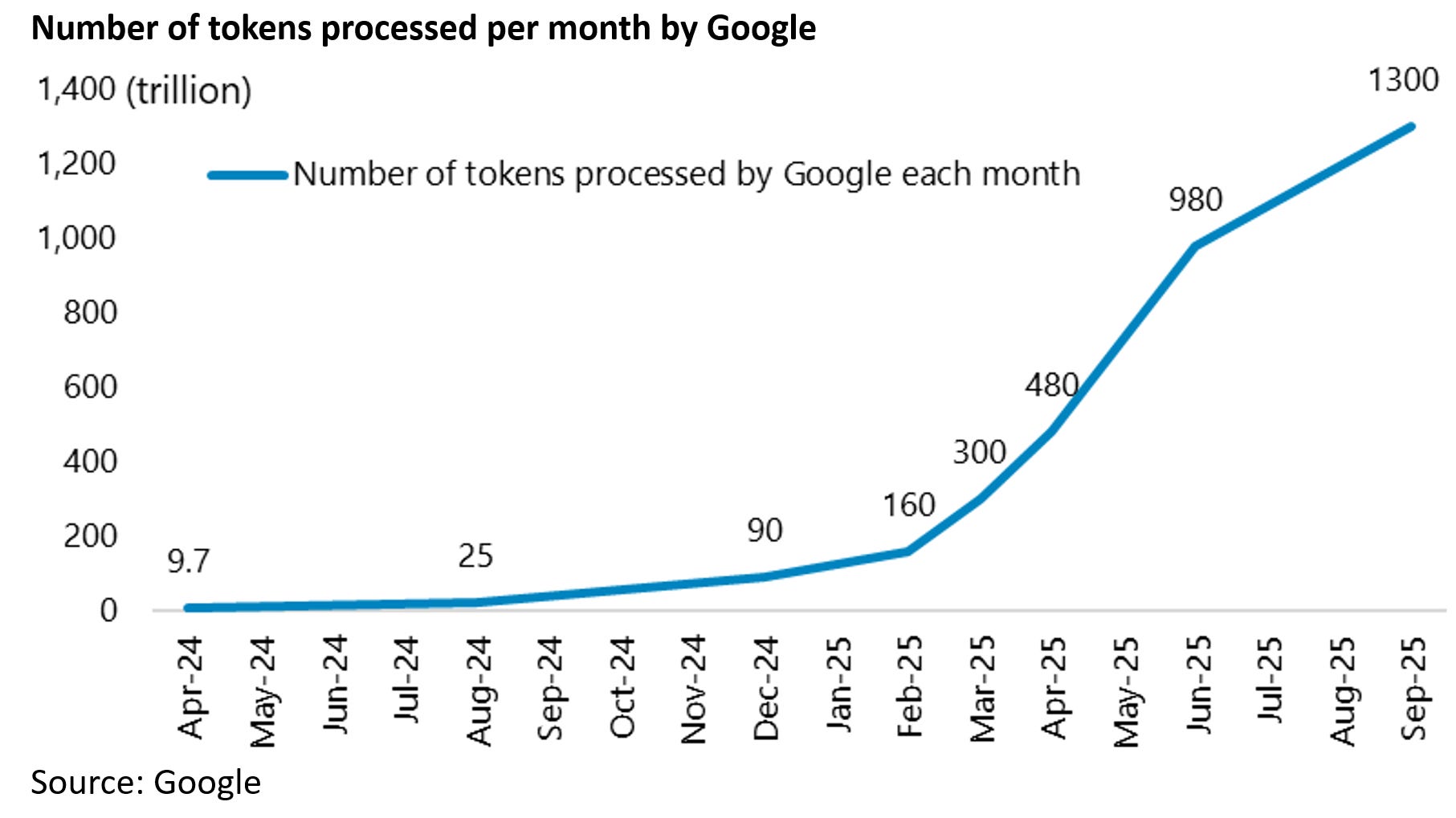 On this point, Google said in October that it processed more than 1.3 quadrillion tokens every month with its AI models, up from 9.7 trillion in April 2024.