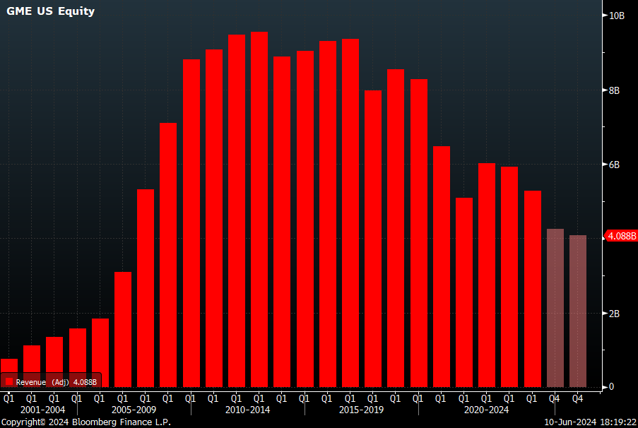 That’s where GameStop has been challenged, since 2012 revenue is falling at an average clip of -5% per year.