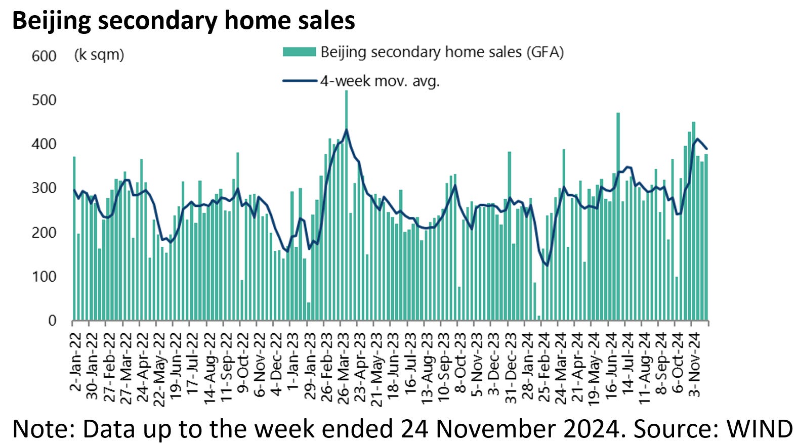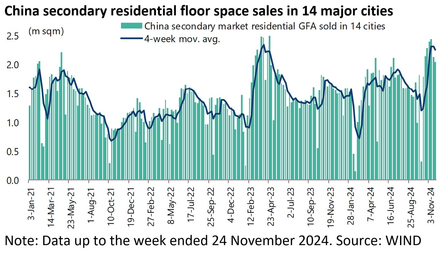 Meanwhile, activity in China’s property market continues to move from the primary market to the secondary market.