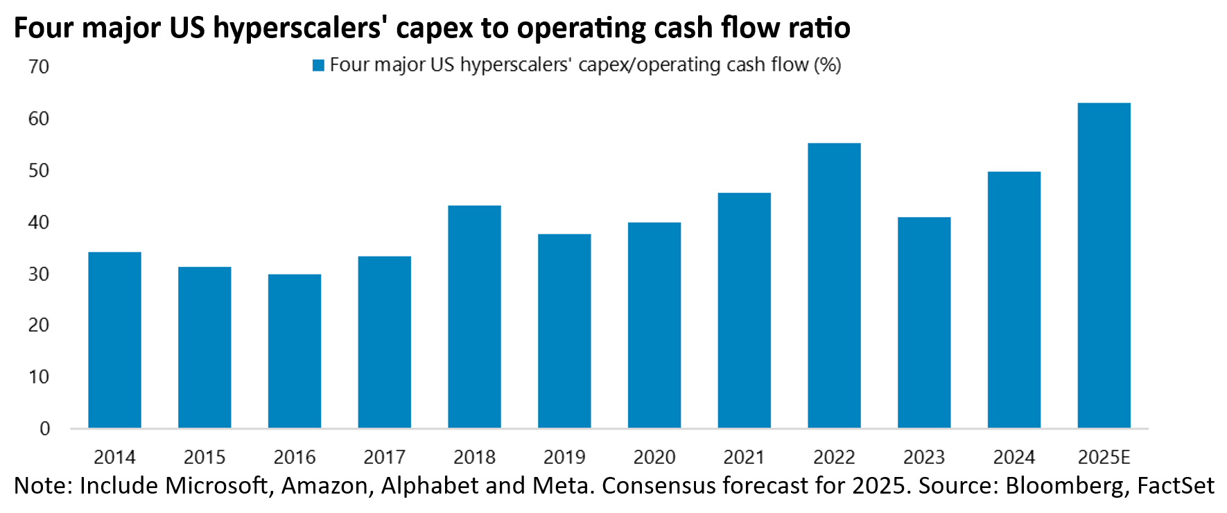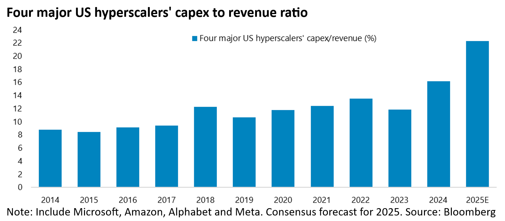 The four hyperscalers are now guiding to spend about US$350bn in capex this year and perhaps more than US$400bn next year based on the latest guidance and consensus estimates.
