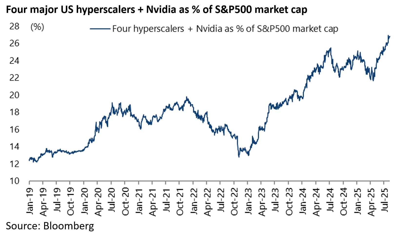 On this point, the Magnificent-7 stocks are now less relevant when it comes to the AI capex trade than the four hyperscalers and Nvidia.