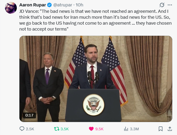 And lastly, negotiations have not gone swimmingly; the American delegation is headed home without a deal.