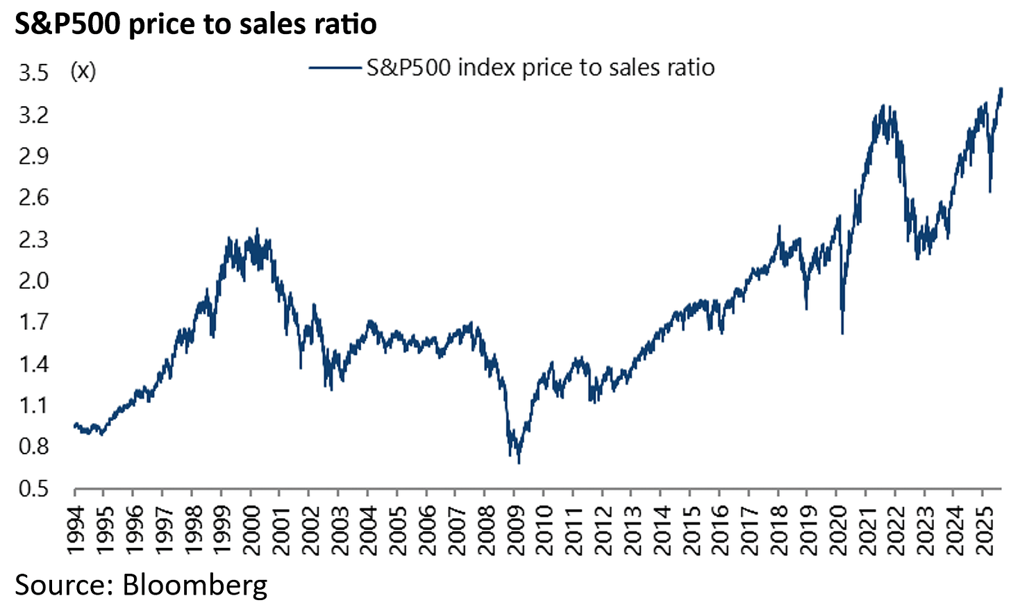 Indeed, the S&P 500 is now trading at a record price to sales ratio of 3.39x.
