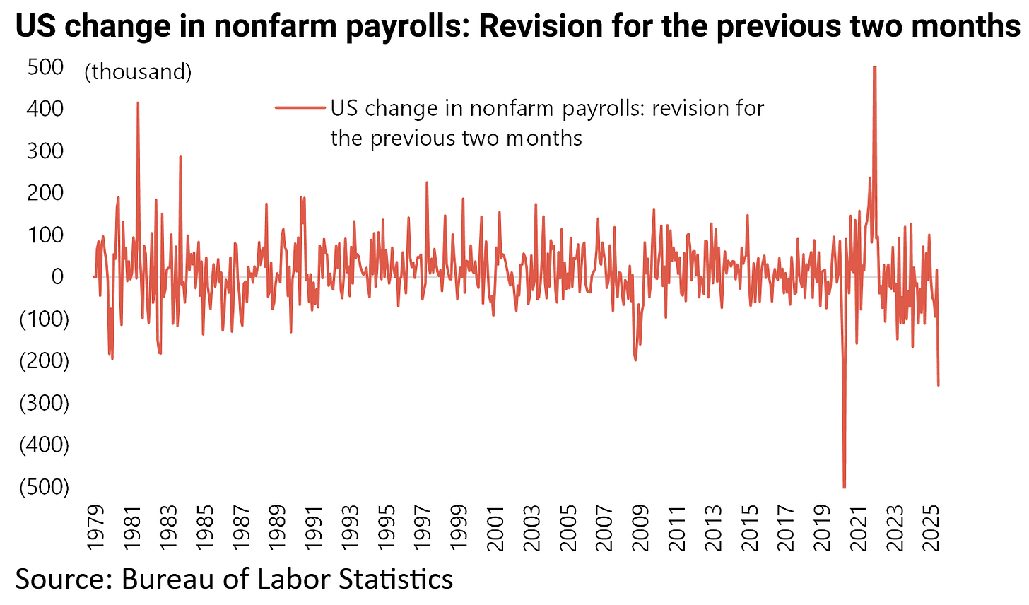 While the increase in the previous two months was revised down by 258,000, the biggest two-month downward revision since at least 1979 if the Covid period is excluded.