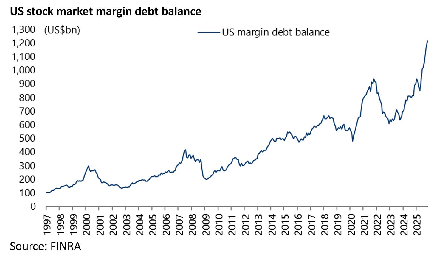 While US stock market margin debt rose by 36% YoY to a record high of US$1.21tn at the end of November.